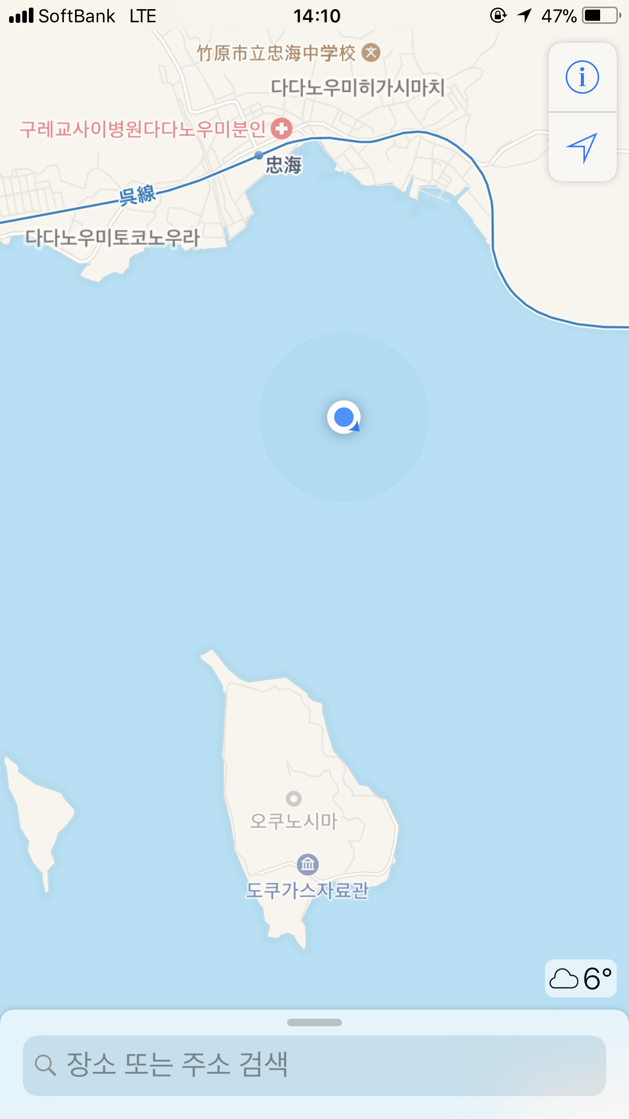 타다노우미 선착장에서 오쿠노시마까지는 약 15~20분 정도 소요된다.