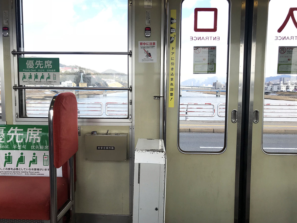 이츠쿠시마에 가기 위해 노면전차 타고 이동하는 중...