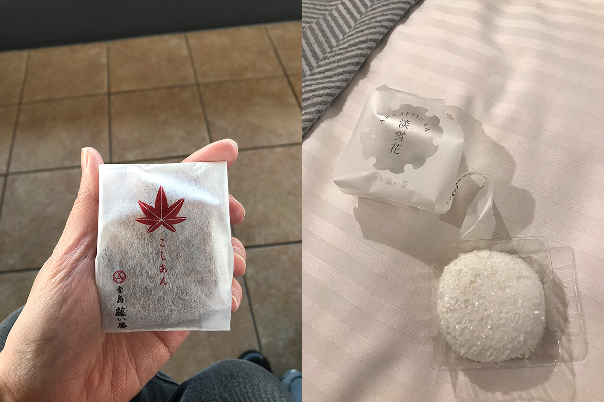 왼쪽은 모미지(단풍)만쥬, 오른쪽은 아와세츠카