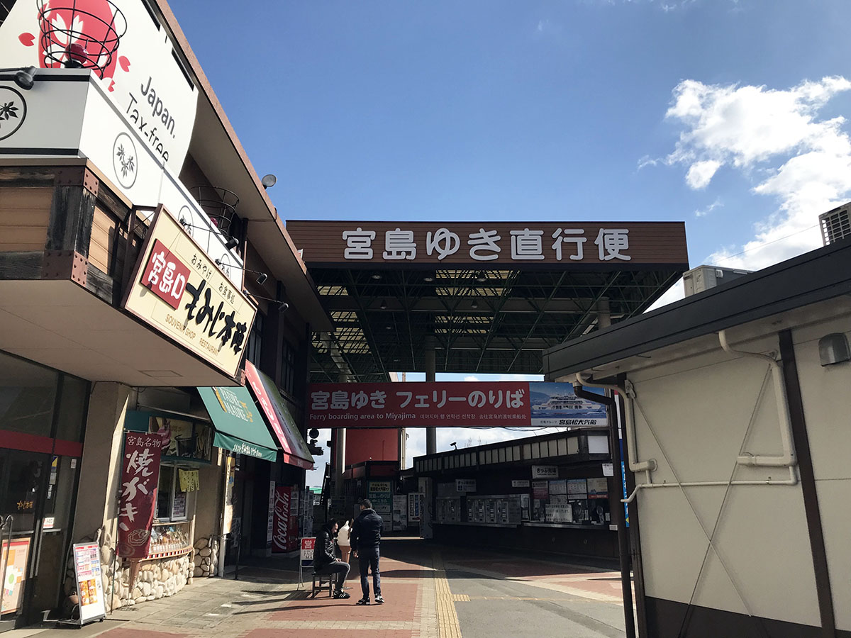 왼쪽 2번 빨간색 라인 종점인 Hiroden-miyajima-guchi(広電宮島口, 히로덴 미야지마구치)에 내리면 된다.